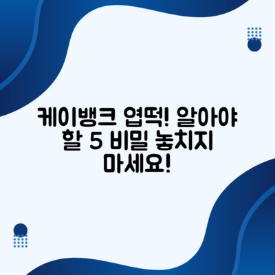 케이뱅크 엽떡, 꼭 알아야 할 5가지 비밀