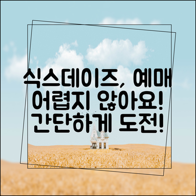 식스데이즈 예매 과정은 다음의 간단한 단계로 진행할 수 있습니다. 각 단계를 차례로 살펴보면 여러분도 쉽게 예매를 완료할 수 있습니다.